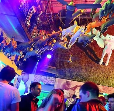 Instant‑Fogas Complex emerged from the fusion of two iconic ruin pubs—Instant and Fogas Háza—to form what is now considered the largest party complex in Central Europe. Located on Akácfa utca in the heart of Budapest’s VII district, this transformation created a labyrinth of interconnected spaces that preserves the gritty charm and urban decay aesthetic of traditional ruin bars, while expanding into a multi-level, multi-room structure. Combining the artistic eclecticism of Fogas’s garden maze and the dynamic energy of Instant’s interiors, the complex now houses seven distinct zones, each with its own design, mood, and musical identity. The result is both magical and surreal: a night-out destination that feels endless, unpredictable, and immersive in every corner.